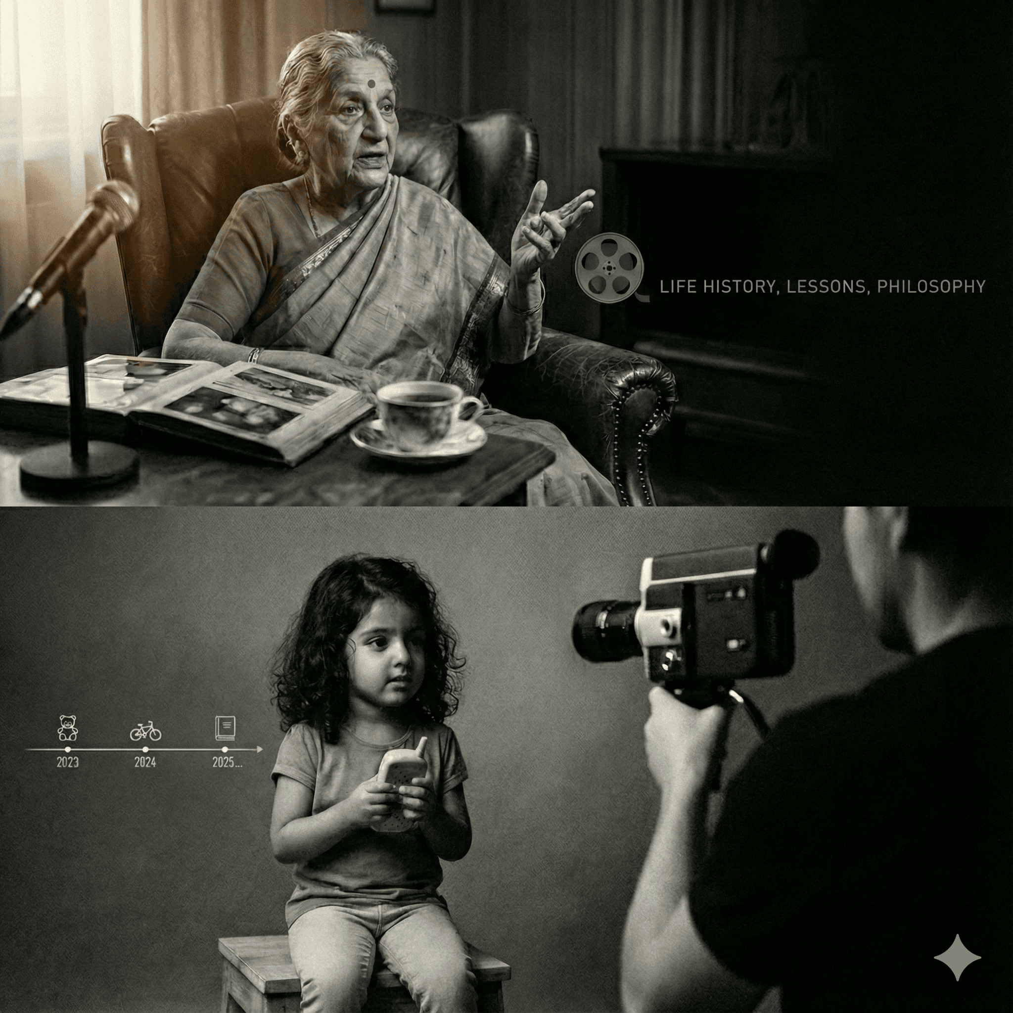For children, we build an 'Untold Story' through annual interviews that chronicle their evolution. For elders, we immortalize a lifetime of wisdom in a definitive documentary—ensuring your family’s most precious voice echoes for generations.