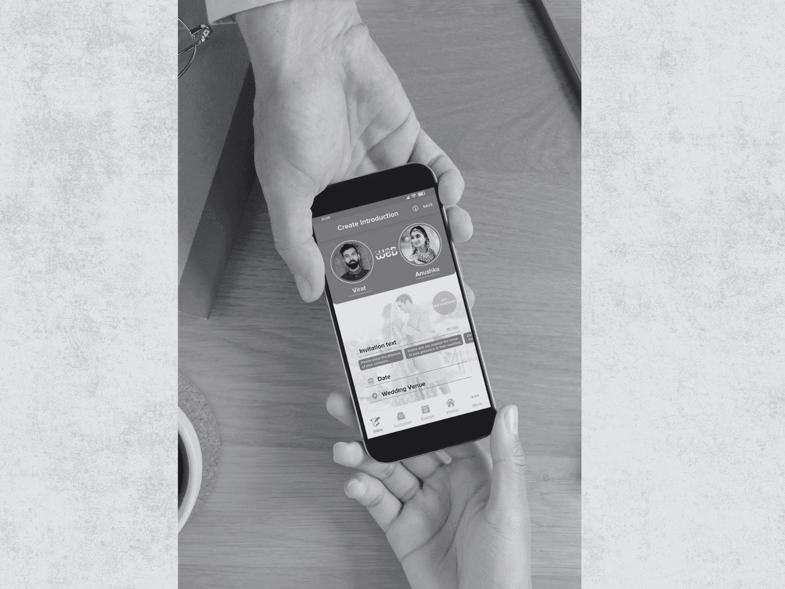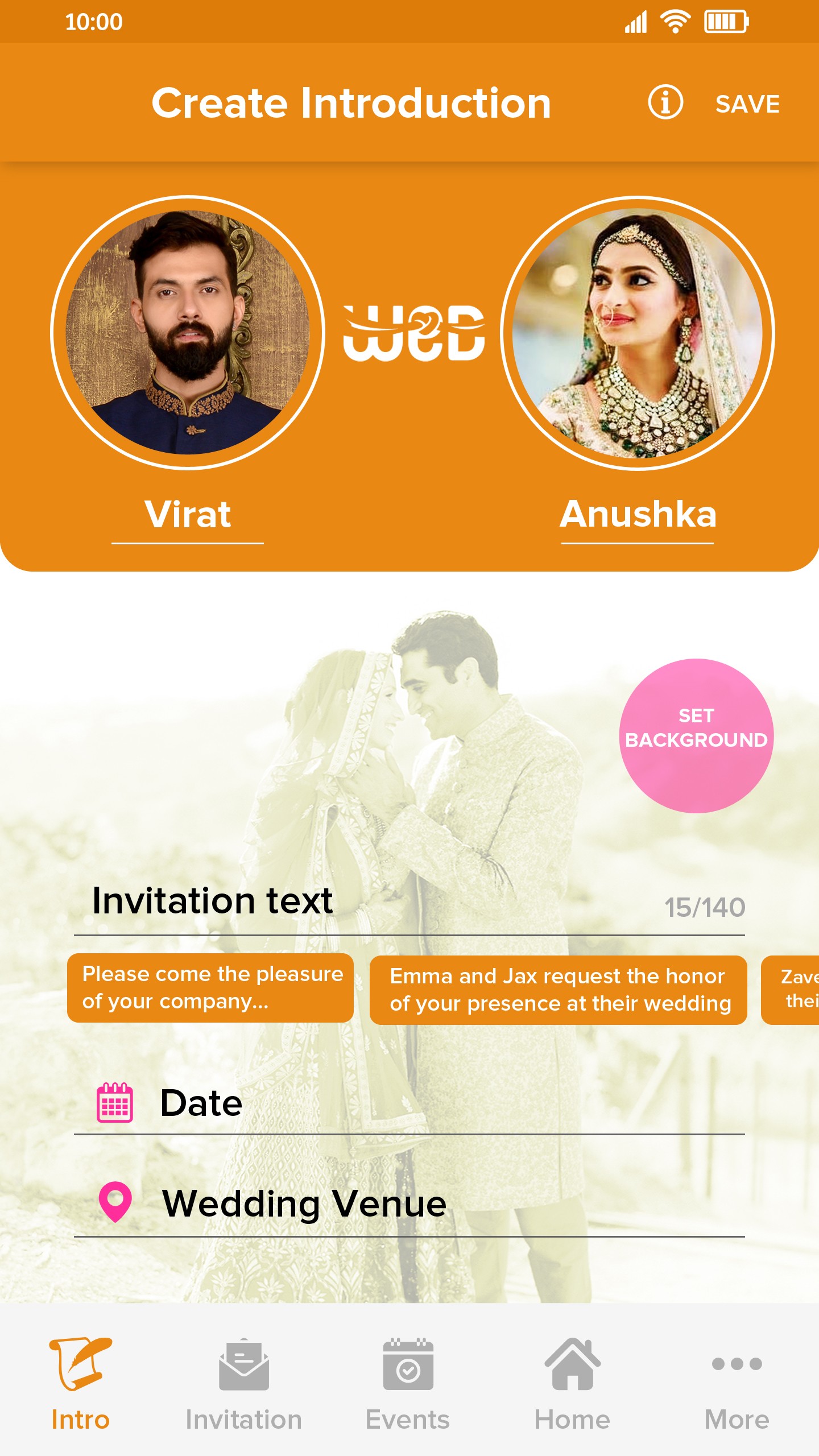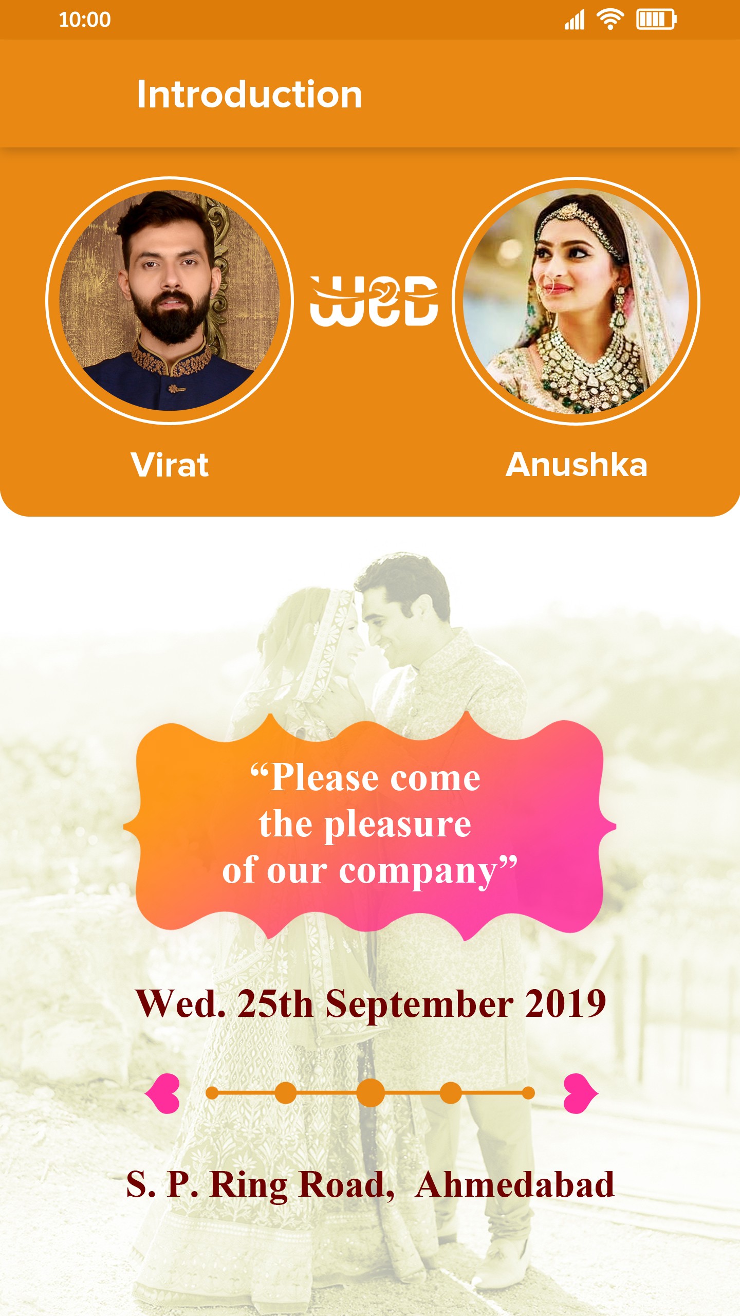 Just as a sutradhar introduces the characters, you introduce the stars of the show. You add the Bride & Groom's photos, their names, and the auspicious dates, grounding the event in tradition.